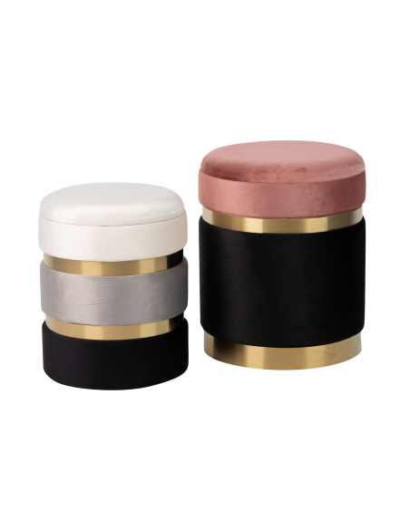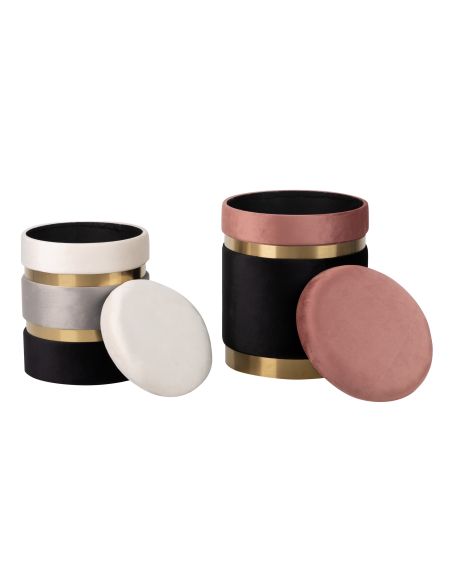 Set 2 puffs velvet tonos grises, negros, rosa y Dorado