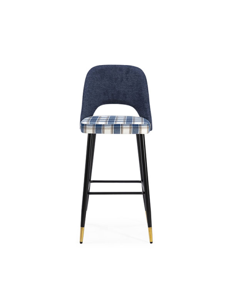 Set 2 Taburetes ST-624 tela cuadros azules patas negro-dorado