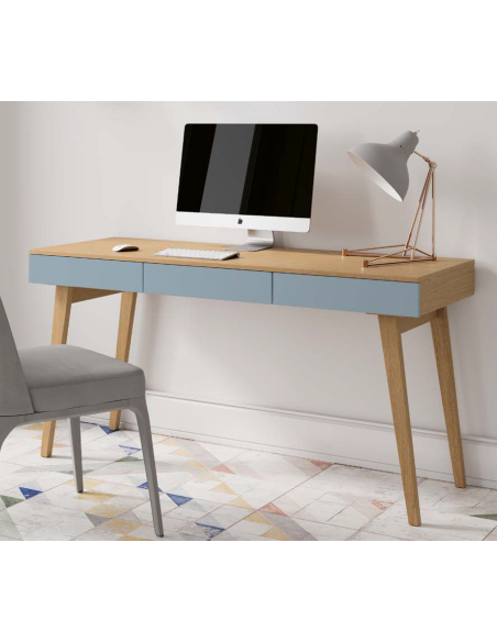 Escritorio tres cajones patas madera Kendra personalizable para que tengas la pieza que más se adapte a tu hogar y tus necesidades. Se trata de una colección de madera terminada con los mejores materiales, de alta calidad y entre los que podrás elegir varios acabados. Y si necesitas cualquier otro acabado o medidas puedes contactar con nosotras para crear la pieza de tus sueños.