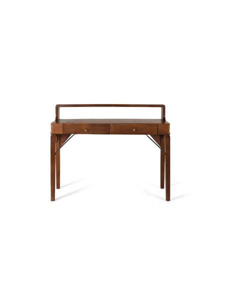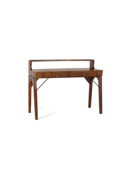 Escritorio 2 cajones Angosto con estante, está construido con madera de alta calidad y presenta un diseño clásico y atemporal que se adapta a una variedad de estilos de decoración. Con dos cajones angostos, este escritorio ofrece un amplio espacio de almacenamiento para tus documentos, suministros de oficina y otros objetos esenciales. Además, cuenta con un pequeño estante superior que proporciona un espacio adicional para organizar tus elementos más utilizados, como bolígrafos, notas adhesivas y clips. Los tiradores de metal bronce añaden un toque de sofisticación al diseño, mientras proporcionan un fácil acceso a los cajones. Su acabado en bronce complementa perfectamente el tono cálido de la madera, creando una estética equilibrada y armoniosa en el escritorio. Con su tamaño compacto y su diseño versátil, nuestro escritorio de madera es perfecto para espacios pequeños, como dormitorios, estudios o incluso rincones de la sala de estar. Su construcción robusta y duradera garantiza años de uso confiable, mientras que su estilo intemporal asegura que se mantenga relevante a lo largo del tiempo.