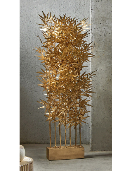 Separador bambú 7 ramas oro 165 cm, diseñada para ofrecer un efecto realista, esta pieza presenta un elegante follaje que se distribuye a lo largo de una maceta rectangular, creando una composición armoniosa y equilibrada. Su brillo dorado aporta un aire de lujo, ideal para decorar salones, oficinas o cualquier espacio que necesite un acento natural y contemporáneo. Sin necesidad de cuidados.