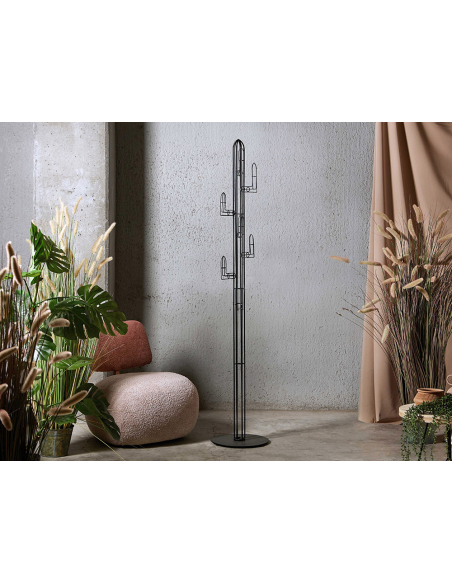 Perchero cactus negro 180 cm, construido en metal con una base redonda, presenta una estructura que evoca la forma de un cactus, añadiendo un toque original y divertido a tu decoración. Su diseño lúdico no solo cumple con la función de colgar abrigos y accesorios, sino que también se convierte en una pieza decorativa que aporta personalidad a cualquier espacio. Ideal para entradas, dormitorios o estudios, este perchero combina funcionalidad con un estilo contemporáneo, convirtiéndolo en una elección perfecta para quienes buscan un toque distintivo en su hogar.