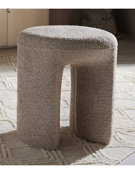 Taburete Tau rizo suave topo, presenta un espectacular diseño moderno en forma de arco que se destaca en cualquier ambiente. Su superficie redonda proporciona comodidad y un soporte óptimo, mientras que toda la estructura está forrada con un textil de alta calidad, añadiendo un toque suave y acogedor. Este taburete no solo es funcional, sino que también actúa como una pieza decorativa que eleva la estética de tu hogar. Ideal para utilizar en salas, dormitorios o incluso como asiento adicional en reuniones, su diseño versátil se adapta a diferentes estilos de decoración.