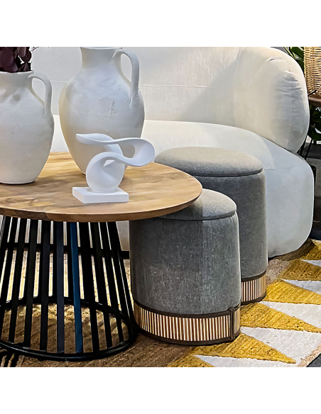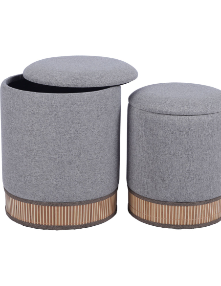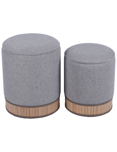 Set de 2 pufs con almacenamiento de bambú gris, es la solución ideal para maximizar el espacio de almacenamiento en tu hogar sin renunciar al estilo. Su diseño moderno y acogedor los convierte en una pieza clave para salones, dormitorios o cualquier rincón donde necesites un asiento adicional y espacio extra. La combinación de materiales como el bambú natural y la tela gris oscura proporciona un toque cálido y sofisticado que se adapta a cualquier tipo de decoración.