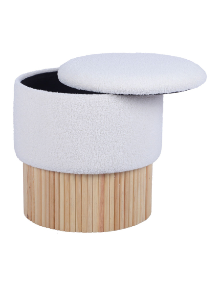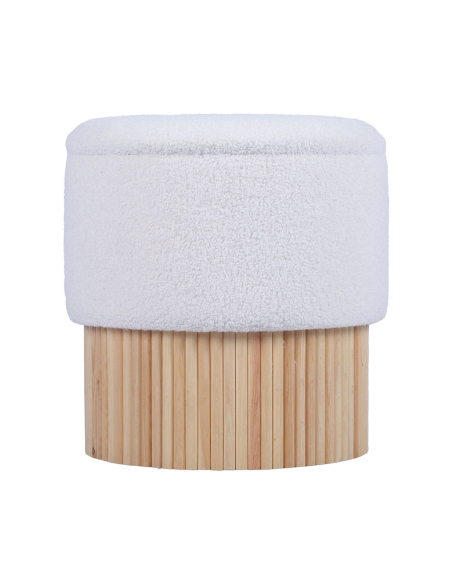 Puf cilíndrico tapizado blanco, con una base cilíndrica de madera natural es la combinación perfecta entre estilo y funcionalidad. Su diseño minimalista y moderno se adapta a cualquier tipo de decoración, desde espacios nórdicos hasta ambientes contemporáneos. El asiento acolchado brinda comodidad extra, convirtiéndolo en la opción ideal para usar como reposapiés, asiento adicional o simplemente como un elemento decorativo. Su base en madera natural añade un toque cálido y sofisticado, aportando personalidad a tu hogar. Perfecto para salones, dormitorios o incluso vestidores, este puf combina durabilidad y diseño en un solo producto.
