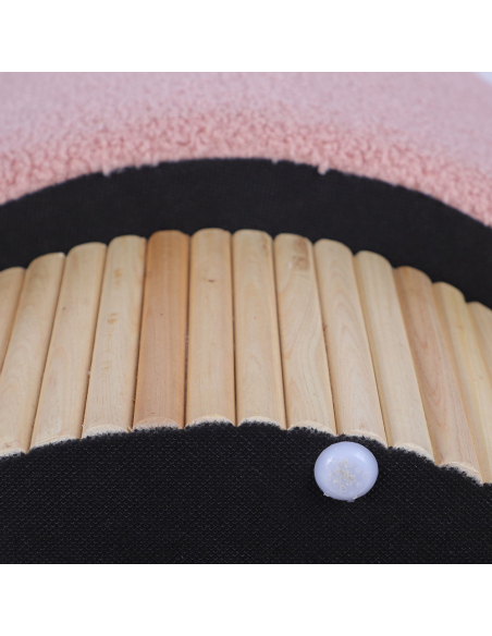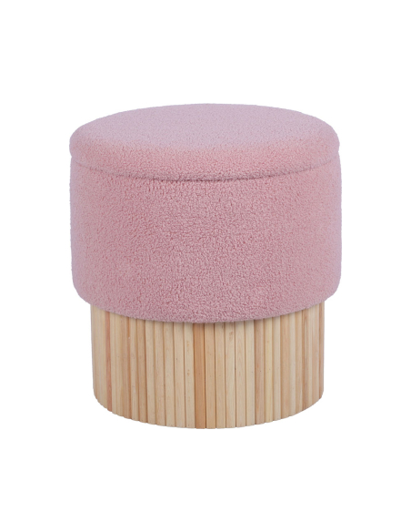 Puf cilíndrico tapizado rosa, con una base cilíndrica de madera natural es la combinación perfecta entre estilo y funcionalidad. Su diseño minimalista y moderno se adapta a cualquier tipo de decoración, desde espacios nórdicos hasta ambientes contemporáneos. El asiento acolchado brinda comodidad extra, convirtiéndolo en la opción ideal para usar como reposapiés, asiento adicional o simplemente como un elemento decorativo. Su base en madera natural añade un toque cálido y sofisticado, aportando personalidad a tu hogar. Perfecto para salones, dormitorios o incluso vestidores, este puf combina durabilidad y diseño en un solo producto.
