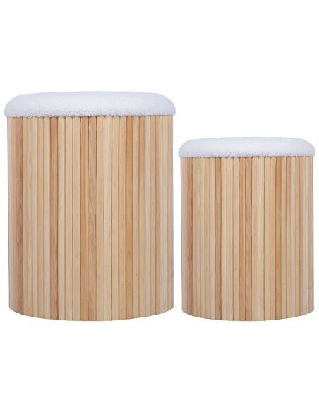 Set de 2 pufs con almacenamiento blanco, combina la calidez de la madera natural con la elegancia de una tapa acolchada blanca, perfecta para añadir un toque de estilo escandinavo a cualquier ambiente. Con su diseño funcional y sofisticado, estos pufs no solo ofrecen un cómodo asiento adicional, sino que también proporcionan un espacio de almacenamiento práctico para mantener organizados objetos como mantas, libros o juguetes. Su estructura de madera natural garantiza durabilidad y resistencia, mientras que la tapa acolchada proporciona confort al usarlos como asiento. Ideales para salas de estar, dormitorios o espacios multifuncionales, este set es la solución perfecta para mantener la armonía y el orden en el hogar.