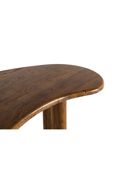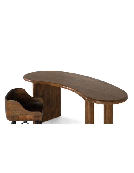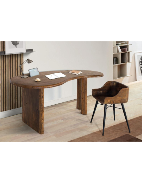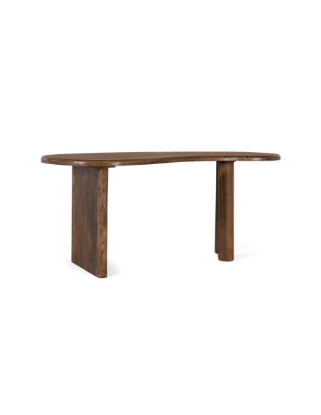Escritorio Arpa curvo, con tablero de bordes curvos y patas macizas tipo panel, una base escultórica que deja buena libertad para la silla. La superficie, generosa y envolvente, invita a crear un home office cálido y funcional: hay sitio para portátil, monitor, lámpara y accesorios sin perder ligereza visual. Su acabado avellana envejecido destaca nudos y vetas, aportando carácter natural a espacios contemporáneos, nórdicos cálidos o wabi-sabi. Ubícalo en un estudio, dormitorio o living como mesa de trabajo o mesa consola amplia. Una pieza versátil que equilibra diseño orgánico y solidez, pensada para trabajar con estilo.