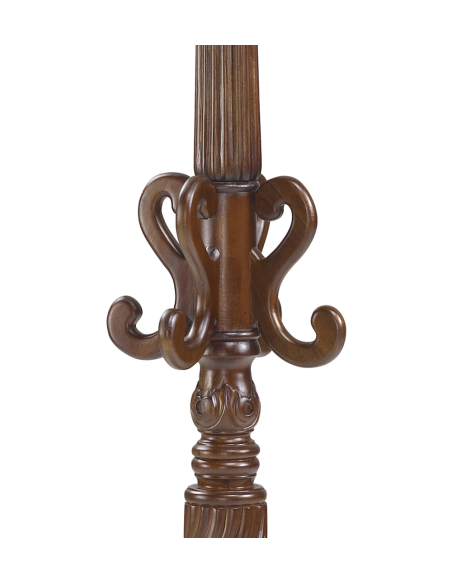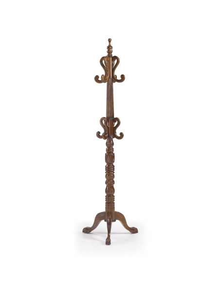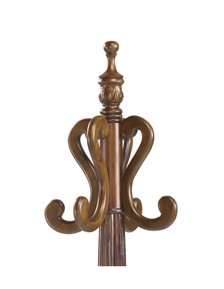 Viste ese rincón desnudo del recibidor con este bonito perchero de pie giratorio Vintage con ocho colgadores de madera y sorprende a tus invitados con su función giratoria. Además, sus ocho colgadores se reparten en dos grupos de cuatro ubicados en dos alturas para que los niños también puedan colgar su abrigo sin necesidad de ayuda. Su mástil está formado por madera tallada, con un exquisito trabajo de la madera llena de acanaladuras, ondas y hojas.