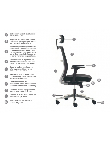 Respaldo tapizado en malla técnica de alta resistencia, negro