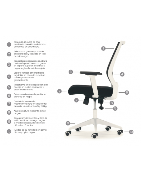 Respaldo tapizado en malla de alta resistencia “efecto tela”, negro