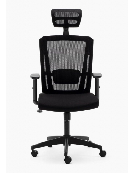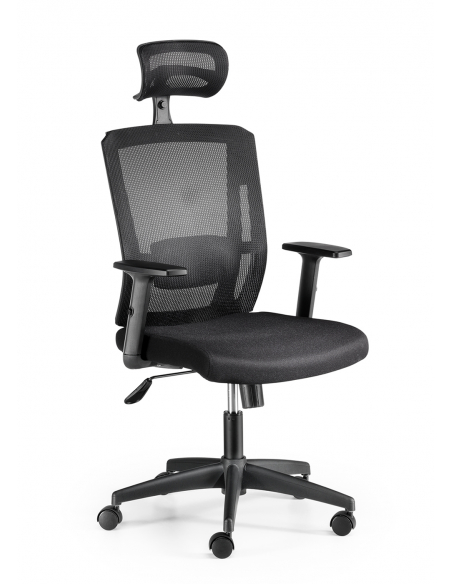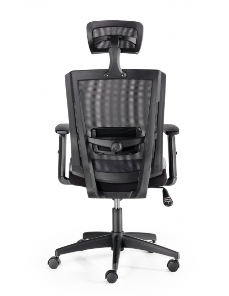 Respaldo tapizado en malla de alta resistencia con cabecero regulable