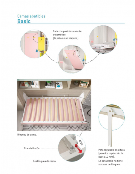 - Pata con bloqueo automático cuando la cama está en posición horizontal (abierta).