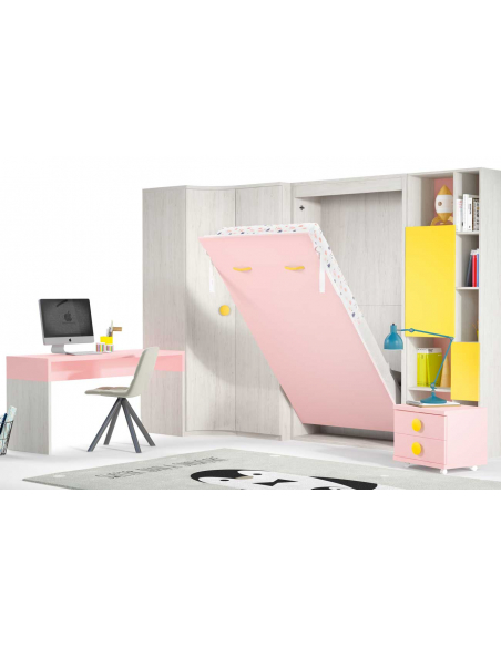 Si la habitación tiene poco espacio y lo necesitas libre para las actividades diarias, no puedes dejar escapar esta cama abatible horizontal con cama de 90 x 190 cm, 105 x 190 cm, 90 x 200 cm o 105 x 200 cm. Una manera de tener lo básico de una habitación en poco espacio.