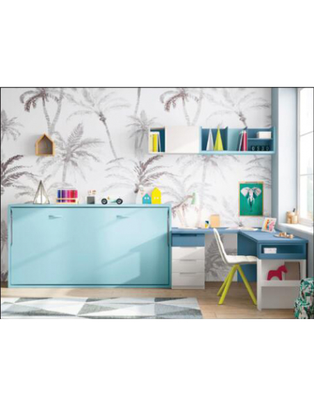 Si la habitación tiene poco espacio y lo necesitas libre para las actividades diarias, no puedes dejar escapar esta cama abatible horizontal con cama de 90 x 190 cm, 105 x 190 cm, 90 x 200 cm o 105 x 200 cm. Una manera de tener lo básico de una habitación en poco espacio.