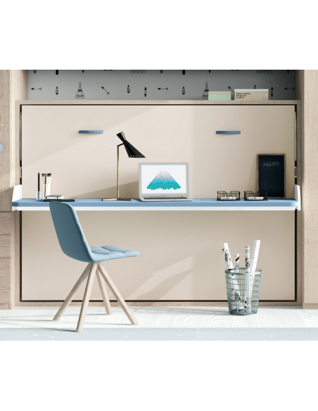 Si la habitación tiene poco espacio y lo necesitas libre para las actividades diarias, no puedes dejar escapar esta cama abatible horizontal con cama de 135 x 190 cm, 140 x 190 cm, 150 x 190 cm o 160 x 200 cm. Una manera de tener lo básico de una habitación en poco espacio.