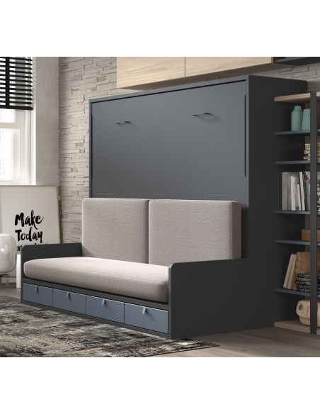 Cama abatible horizontal fondo 57 con sofá 4 cajones