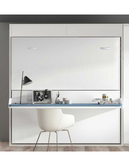 Si la habitación tiene poco espacio y lo necesitas libre para las actividades diarias, no puedes dejar escapar esta cama abatible horizontal doble con cama de 90 x 190 o 200 cm. Una manera de tener lo básico de una habitación en poco espacio.