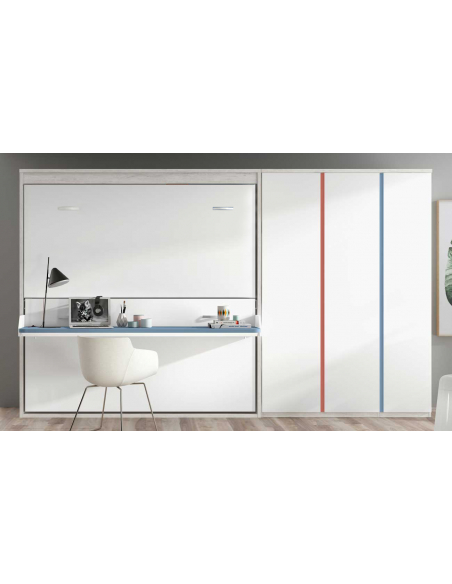 Si la habitación tiene poco espacio y lo necesitas libre para las actividades diarias, no puedes dejar escapar esta cama abatible horizontal doble con cama de 90 x 190 o 200 cm. Una manera de tener lo básico de una habitación en poco espacio.