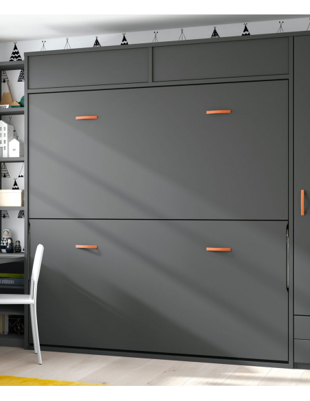 Si la habitación tiene poco espacio y lo necesitas libre para las actividades diarias, no puedes dejar escapar esta cama abatible horizontal doble con cama de 90 x 190 o 200 cm con altillo en la parte superior. Una manera de tener lo básico de una habitación en poco espacio.