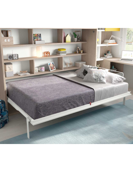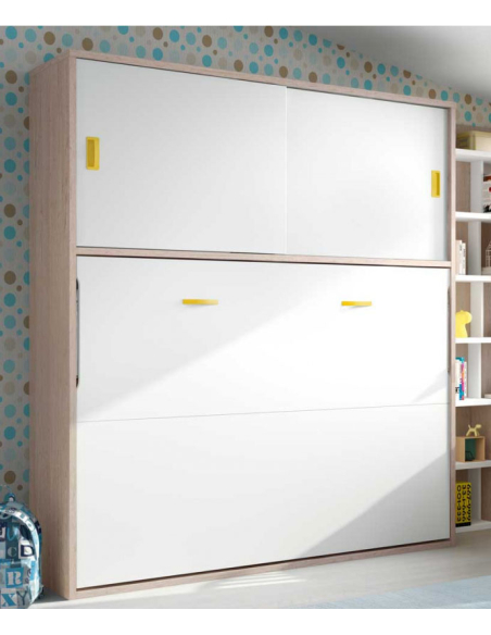 Cama abatible horizontal baja grande con armario de 135 x 190 cm o 140 x 190 cm. Una manera práctica de ahorrar espacio.