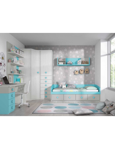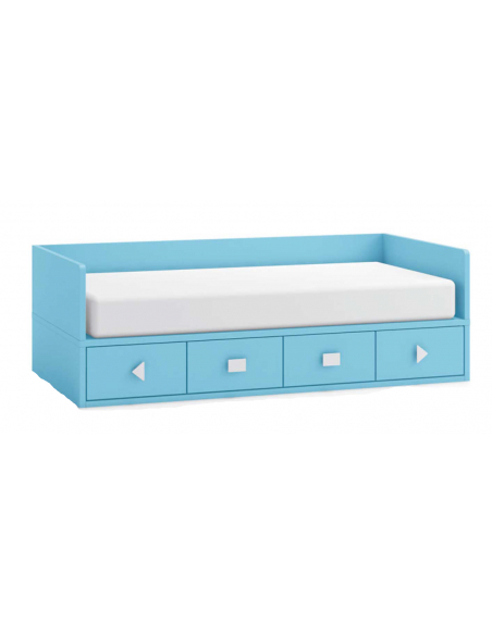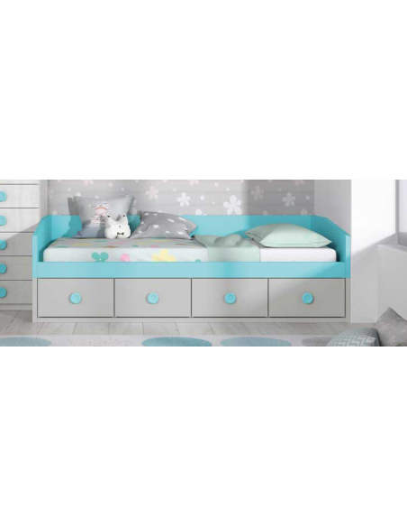 Cómodo y práctico nido bicolor con cuatro contenedores donde tendrás una cama alta para colchones de 90 o 105 y de 190 o 200 cm de largo. Cuenta con cuatro contenedores en la parte inferior para tener más espacio de almacenaje en caso de necesitarlo. Este modelo incluye una corona decorativa que, además de ayudar a que no se roce o ensucie la pared, podrás elegir un color que destaque sobre los demás para que visualmente quede una pieza más completa.