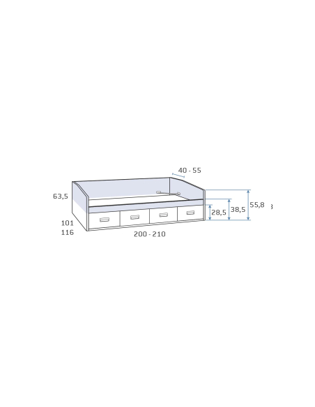 Compacto 200 x 90: ↔ 210 ↗ 101 ↕ 63,5 cm