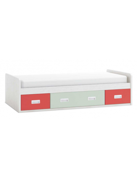 Cómodo y práctico compacto con dos contenedores y un baúl donde tendrás una cama alta para colchones de 90 o 105 y de 190 o 200 cm de largo. Cuenta con dos contenedores y un baúl en la parte inferior para tener espacio extra de almacenaje en caso de necesitarlo.