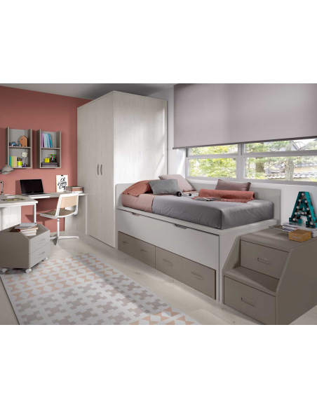 Cómodo y práctico compacto con nido oculto y dos cajones con ruedas donde tendrás una cama alta para colchones de 90 o 105 y de 190 o 200 cm de largo. Cuenta con nido oculto y dos cajones con ruedas en la parte inferior para tener una cama extra y espacio extra de almacenamiento en caso de necesitarlo.