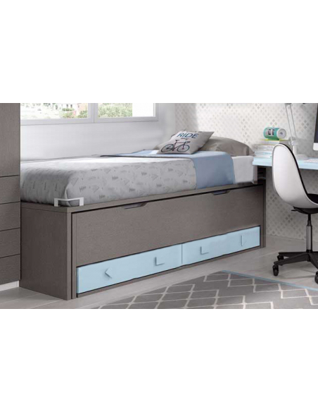 Cómodo y práctico compacto con nido oculto y dos baúles bajos donde tendrás una cama alta para colchones de 90 o 105 y de 190 cm de largo. Cuenta con nido oculto y dos baúles bajos en la parte inferior para tener una cama extra y espacio extra de almacenamiento en caso de necesitarlo.