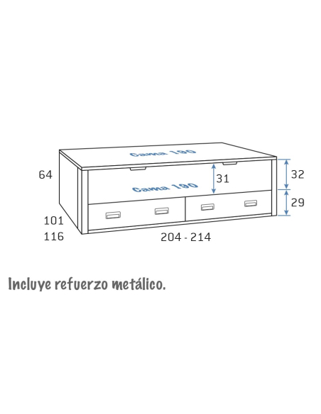 Compacto 190 x 90: ↔ 204 cm ↗ 101 cm ↕ 64 cm - Nido de 190 x 90