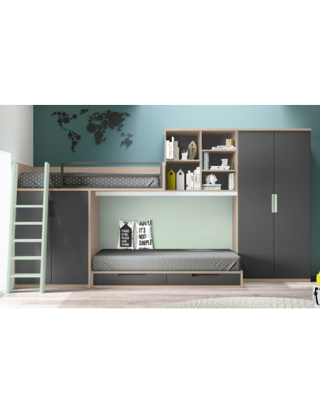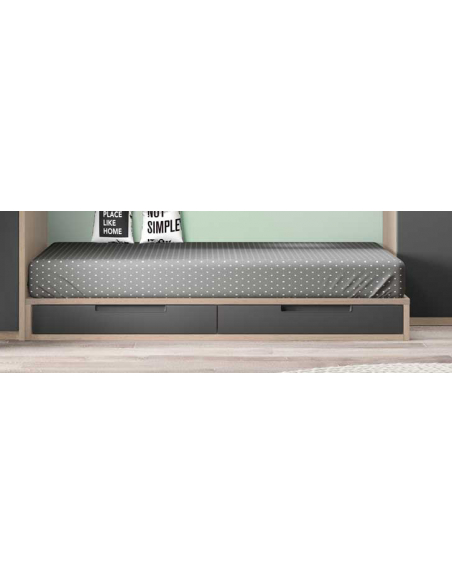 Cómodo y práctico compacto bajo con dos baúles donde tendrás una cama para colchones de 90 o 105 de ancho y de 190 o 200 de largo. Cuenta con dos baúles pequeños en la parte inferior para tener espacio extra de almacenamiento en caso de necesitarlo.