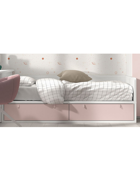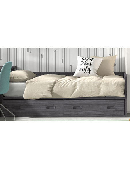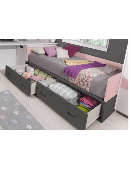 Cómodo y práctico compacto con módulo dos baúles con guías donde tendrás una cama para colchones de 90 o 105 de ancho y de 190 o 200 de largo. Cuenta con un módulo de dos baúles en la parte inferior para tener espacio extra de almacenamiento en caso de necesitarlo.