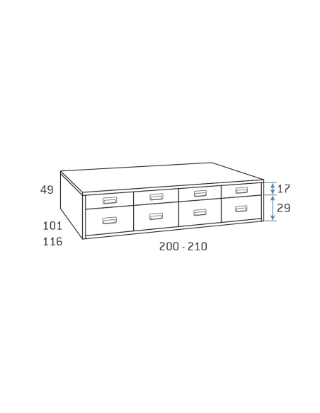 Compacto 200 x 90: ↔ 210 cm ↗ 101 cm ↕ 49 cm