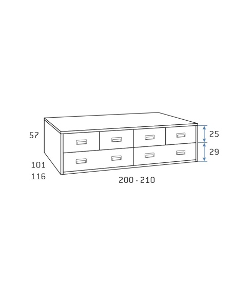 Compacto 200 x 90: ↔ 210 cm ↗ 101 cm ↕ 57 cm