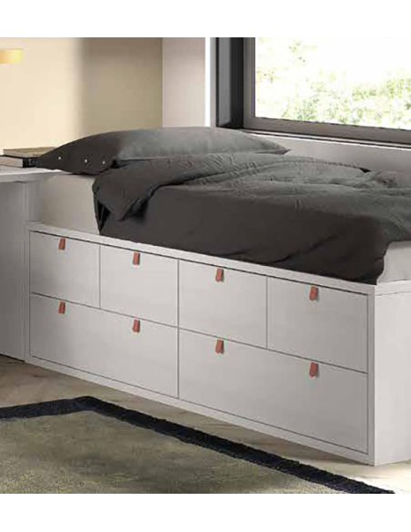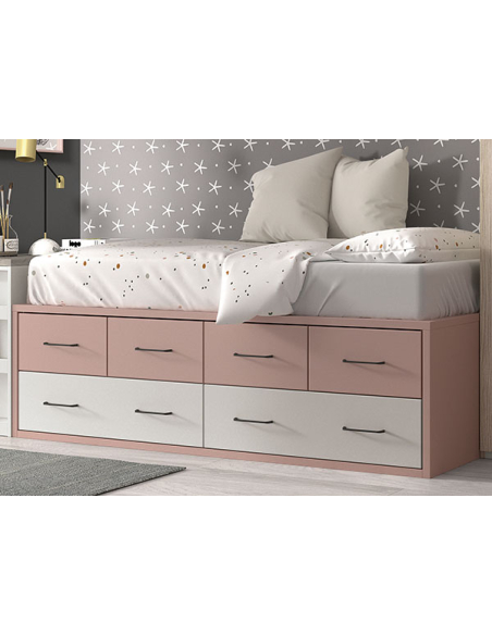 Cómodo y práctico compacto liso con contenedores y dos baúles donde tendrás una cama para colchones de 90 o 105 de ancho y de 190 o 200 de largo. Cuenta con cuatro contenedores y dos baúles en la parte inferior para tener almacenamiento extra en caso de necesitarlo.