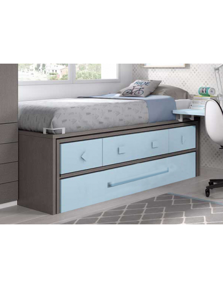 Cómodo y práctico compacto liso con dos contenedores, un baúl y somier de arrastre donde tendrás una cama para colchones de 90 o 105 de ancho y de 190 o 200 de largo. Cuenta con dos contenedores, un baúl y somier de arrastre en la parte inferior para tener una cama extra y almacenamiento en caso de necesitarlo.