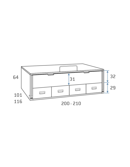 Compacto 200 x 90: ↔ 210 cm ↗ 101 cm ↕ 64 cm - Nido 190 x 90