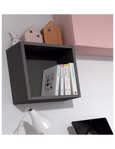 Estante diáfano cubo. Fácil de complementar y combinar con cualquier tipo de mobiliario juvenil. Es una pieza sencilla, personalizable y práctica.