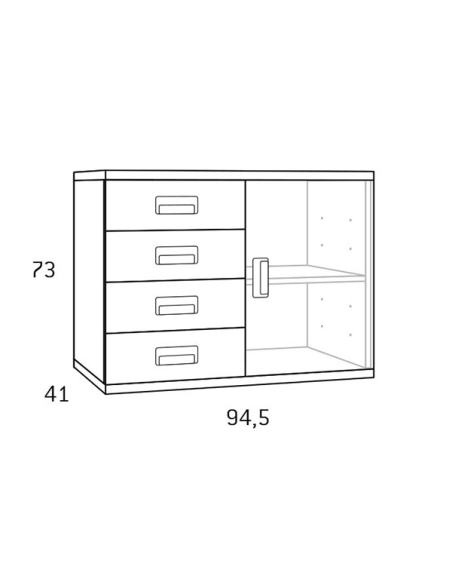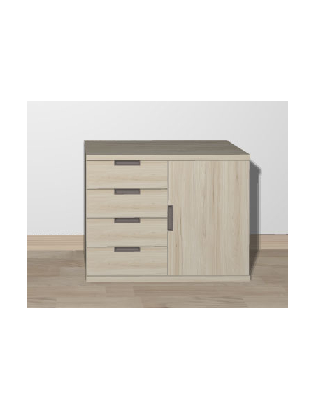 Módulo auxiliar cajones y puerta con base sencilla o con ruedas para habitaciones juveniles totalmente personalizable. Con estas piezas podrás elegir los colores base, los frentes de los cajones y los tiradores que más combinen con el dormitorio o la idea de dormitorio que quieras.