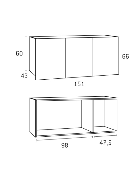 Dos puertas:  ↔ 101,5 cm ↗ 43 cm ↕ 60 cm - Para camas de 90 / Necesita barra, bastidor metálico o soporte metálico de sujeción.