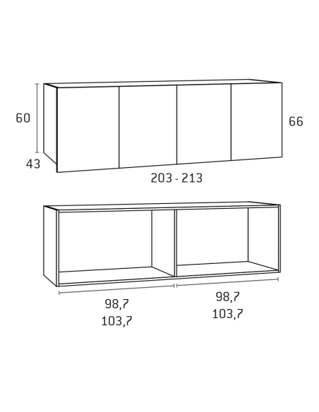 Cuatro puertas:  ↔ 213 cm ↗ 43 cm ↕ 60 cm - Para nido o compacto de 200 / Necesita barra, bastidor metálico o soporte metálico de sujeción.