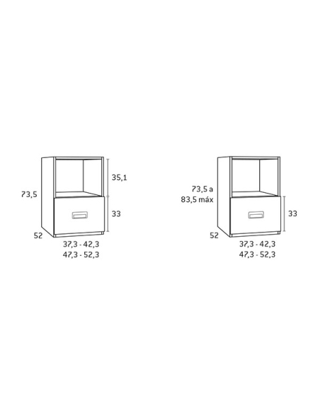 A Medida de alto: ↔ 37,3 / 42,3 / 47,3 / 52,3 cm ↗ 52 cm ↕ 73,5 a 83,5 cm