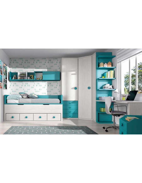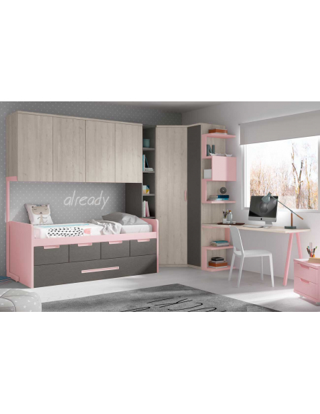Pie de mesa estudio diáfano para habitaciones juveniles totalmente personalizable. Con estas piezas podrás elegir los colores base, los frentes de los cajones y los tiradores que más combinen con el dormitorio o la idea de dormitorio que quieras.