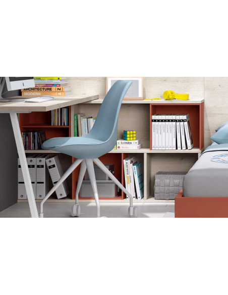 Pie de mesa estudio diáfano con huecos para habitaciones juveniles totalmente personalizable. Con estas piezas podrás elegir los colores base que más combinen con el dormitorio o la idea de dormitorio que quieras.