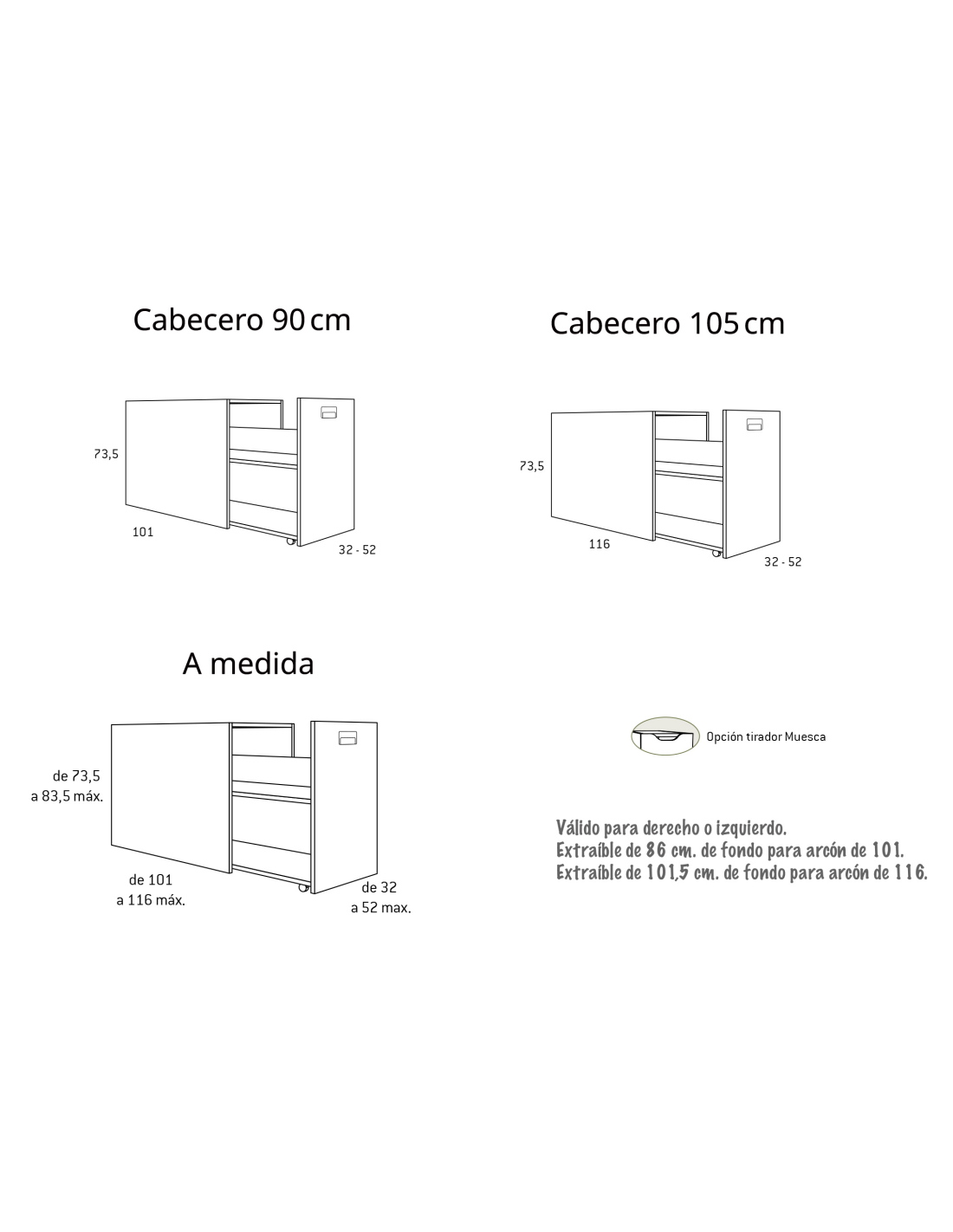 ↔ 32 cm ↗ 116 cm ↕ 73,5 cm / extraíble de 101,5 cm