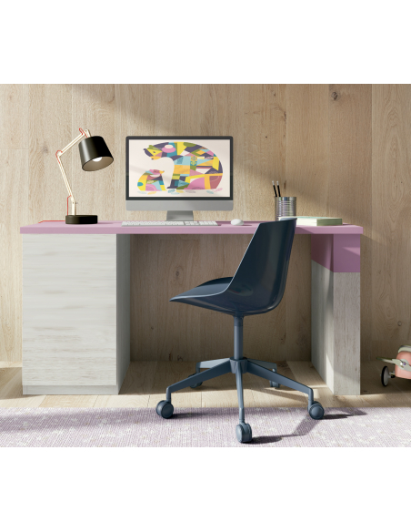Arcón lateral con puerta para habitaciones juveniles totalmente personalizable. Con estas piezas podrás elegir los colores base, los frentes de los cajones y los tiradores que más combinen con el dormitorio o la idea de dormitorio que quieras.