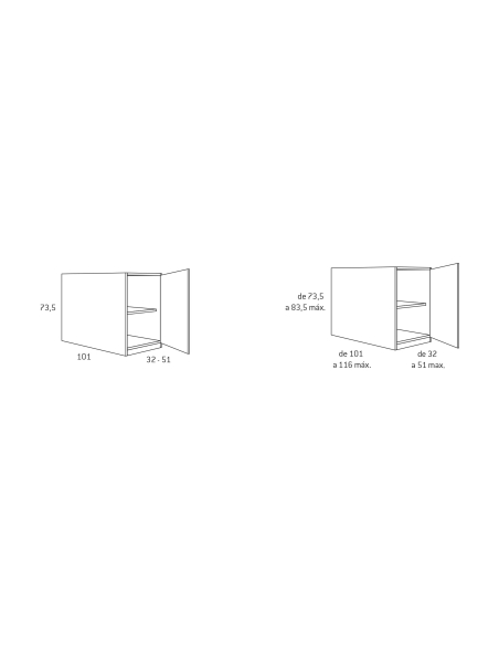 Medidas: ↔ 32 / 51 cm ↗ 101 - 116 cm ↕ 71,5 - 81,5 cm