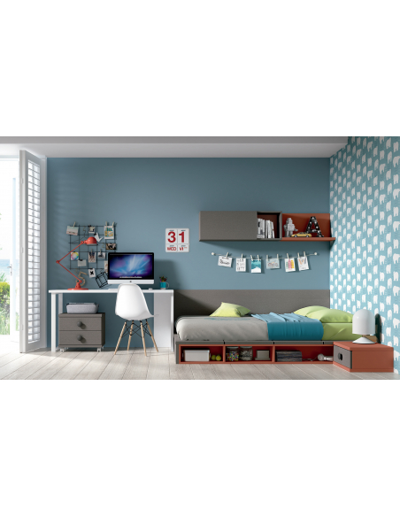 Costado de mesa estudio lateral para habitaciones juveniles totalmente personalizable en acabados y altura. Con estas piezas podrás elegir los colores base que más combinen con el dormitorio o la idea de dormitorio que quieras.