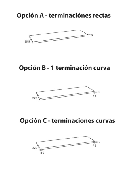 - Opción B: Una terminación curva (puede ser la derecha o la izquierda).